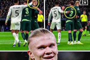 DAZN晒出图,在哈兰德罚点前,贝林想碰下哈兰德头发,不过被鲁本·迪亚斯阻挡,之后贝林还回头看了一眼。之后有球迷也晒出了这一瞬间的视频。