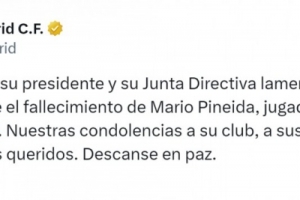 皇马官方社媒写道:“皇家马德里俱乐部、主席及董事会对瓜亚基尔巴塞罗那俱乐部球员马里奥·皮尼达的逝世深表哀悼,谨向其俱乐部、家人及所有亲友致以最深切的慰问。愿逝者安息。”