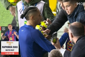 体育资讯12月22日讯 西甲第17轮比赛,巴萨在客场挑战比利亚雷亚尔。本场比赛,拉菲尼亚点射为红蓝军团首开纪录。赛后,拉菲尼亚被西甲官方评为全场最佳球员。