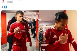 利物浦官推也晒出科尔克兹以及范迪克在赛后球员通道的照片,配文写道:“+3分!”