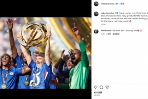 桑切斯晒出自己同马雷斯卡在世俱杯夺冠后的庆祝同框图,并配文:“恩佐(马雷斯卡的名字也是恩佐)、麦基、威利、丹尼、马科斯和罗比(后几个名字均是马雷斯卡教练组成员的昵称),谢谢你们的一切。”