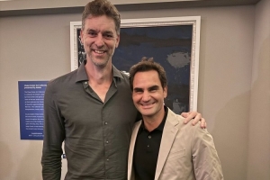 体育资讯9月22日讯 今天,前NBA球员保罗-加索尔在社媒上晒出了和网球名将费德勒的合影。