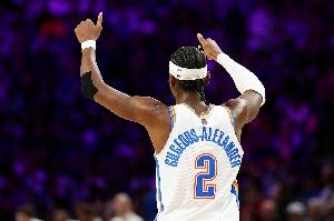 本场比赛,亚历山大三节打卡,他出战28分钟,投篮20中10,三分球5中3,罚球7中7,拿到30分1篮板7助攻。