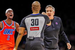 在那一瞬间之前,雷霆的战绩是25胜2负,在那之后,雷霆5胜5负(包括当场比赛),并且,在最近的9场比赛中,雷霆的场均罚球出手数排名联盟倒数第5(赛季至今总计则是排联盟第18)!