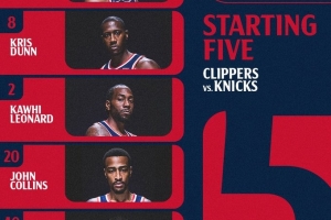 快船首发:哈登、邓恩、小卡、科林斯、祖巴茨
