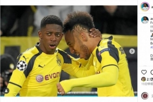 奥巴梅扬社媒晒出与登贝莱效力多特、巴萨时期的多张合照,配文:“兄弟,我有太多照片要发了!感谢你成为这样的自己🙏🏽实至名归❤️🤝🏽也恭喜你,穆斯 (登贝莱好友)🤲🏽抱歉发了最后一张照片🤣🤣”