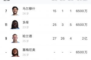 曼城中前场阵容十分豪华,其中包括哈兰德、多库、塞梅尼奥、马尔穆什,鲍勃和萨维尼奥受伤。此外还有福登、谢尔基等球星。