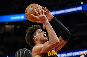杰伦·约翰逊上半场9投7中,三分2中1,罚球4中2砍下17分9篮板4助攻1盖帽,没有失误,正负值+17全场最高。