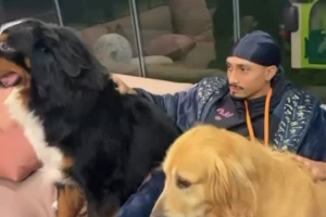 拉菲尼亚社媒晒出与狗狗在一起的视频,配文:“我的孩子们。”