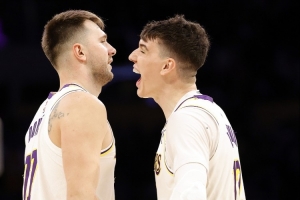 此役湖人外线开火,全队三分34投19中,命中率高达55.9%。东契奇三分9中5,詹姆斯三分4中2,拉拉维亚三分4中3。