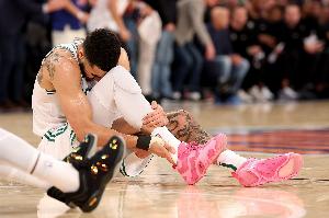 在更衣室里,塔图姆被他的训练师和母亲布兰迪-科尔包围着,他无法得到安慰:“我真的坐在那里哭了两个小时,因为我的脑海里闪过无数念头:‘天啊,我的职业生涯结束了吗?我会被交易吗?所有的合作伙伴都会抛弃我吗?’我的篮球生涯在我眼前闪现,”他说,“我正处于巅峰时期,是世界上最好的篮球运动员之一,但感觉这一切都被夺走了。”