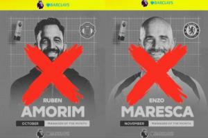 本赛季英超此前颁发了四座月度最佳主教练的奖杯,其中11月得主马雷斯卡于元旦当天下课,而10月最佳得主阿莫林于1月5日下课。
