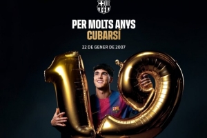 体育资讯1月22日讯 今天是巴萨中卫库巴西的19岁生日,巴萨官方为其送上祝福。