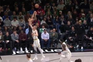 GIF-小波特干拔三分踢腿绊倒豪泽,进攻犯规