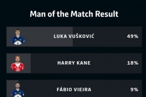 本场比赛汉堡球员武什科维奇打进扳平进球,赛后以49%的得票率当选本场最佳球员,凯恩以18%排名次席。