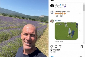 齐达内社媒晒出在薰衣草田间的照片,他面带微笑,配文:“普罗旺斯。”