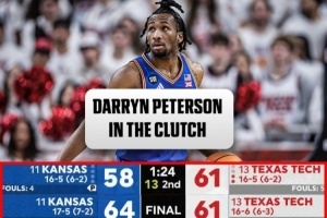 比赛最后时刻,堪萨斯大学打出一波17-4的攻击波完成大逆转,彼德森最后投中了两记高难度三分,包括准绝杀的三分。