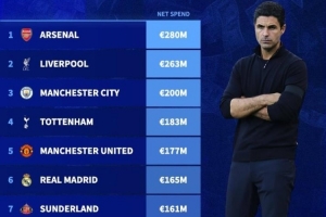 体育资讯2月4日讯 “转会市场网”统计了本赛季到目前为止,转会净支出最高的十家俱乐部,英超6队在列并占据前5名(单位:欧元;部分联赛转会窗尚未关闭)。