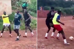 体育资讯6月27日讯 近日,曼联门将奥纳纳回到了家乡喀麦隆度假,期间他与童年好友一起在野球上踢球。