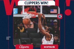 赛后,快船官方发布赢球海报,伦纳德双手扣篮的瞬间上封面。