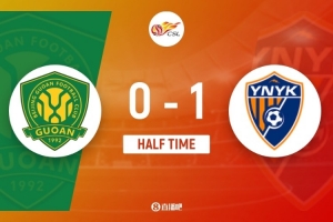 半场-北京国安0-1云南玉昆 叶楚贵破门法比奥禁区倒地VAR取消点球