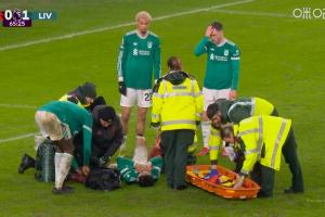 体育资讯02月12日讯 利物浦vs桑德兰第67分钟,远藤航受伤痛苦倒地,医疗人员抬着担架入场,远藤航伤退!