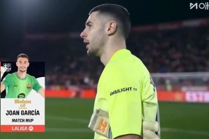 全文摘要:西甲第24轮,巴萨客场1-2不敌赫罗纳。尽管球队失利,但门将霍安·加西亚凭借全场7次关键扑救,力挽狂澜,以8.2分的高分当选全场最佳球员,成为巴萨本场比赛最耀眼的球员。