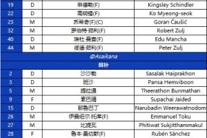 上海申花替补:2-王世龙、7-徐皓阳、14-谢鹏飞、16-杨泽翔、17-高天意、24-马镇、33-汪海健、34-刘诚宇、36-黄铭、38-吴启鹏、43-杨皓宇、45-韩嘉文