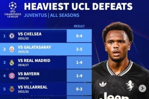 全文摘要:欧冠1/8决赛首回合,尤文图斯2-5惨败于加拉塔萨雷。此役不仅是尤文本赛季欧冠的最大失利,也使其队史欧冠第二大惨败,并创下队史首次单场丢5球的纪录。