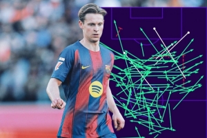全文摘要:西甲第25轮,巴萨3-0胜莱万特。弗兰基·德容表现惊艳,他在比赛中送出117次精准传球,成功率高达97%,追平了克罗斯创造的近十年西甲纪录。此外,他还以4次关键机会成为全场最佳,展现了世界级中场的控制力。