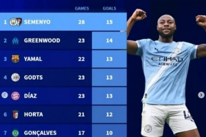 全文摘要:德转统计本赛季欧洲前十联赛边锋进球榜,塞梅尼奥以28场15球高居榜首,格林伍德、亚马尔等紧随其后。维尼修斯位列第十,25场贡献9球。