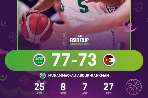 沙特归化球员拉赫曼出战37分21秒,20投8中,三分11中3,罚球7中6,得到25分8篮板7助攻2抢断,沙特2米08中锋阿尔苏韦莱姆出战30分17秒,11投5中,罚球4中4,砍下14分15篮板1助攻6盖帽。