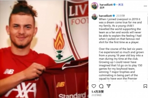 体育资讯9月2日讯 埃利奥特已经官宣加盟维拉,他也通过社媒发文告别利物浦: