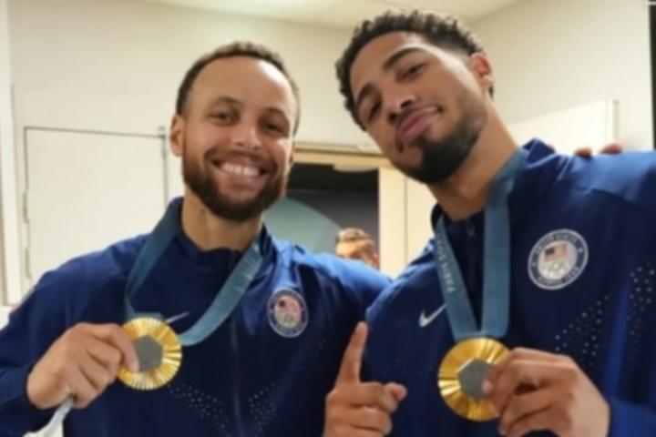 哈利伯顿转发了库里的Instagram中跟自己的合影,并附上了“🥇🥇”。