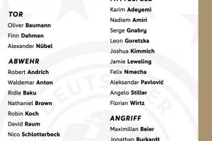 体育资讯10月02日讯 德国队公布了新一期世预赛名单,沃尔特马德、维尔茨领衔,基米希、格雷茨卡、格纳布里在列。