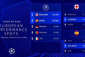 体育资讯04月10日讯 欧足联官方今日发布文章,表示英超由于欧战积分领跑且肯定位居前二,因此已经锁定下赛季5个欧冠名额,下赛季英超至少有5队能够参加欧冠。