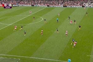 体育资讯10月04日讯 英超第7轮,阿森纳vs西汉姆联。比赛第24分钟,萨卡破门但越位在先,进球无效。