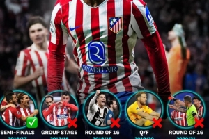 据统计,这是马竞9年以来首次能够跻身欧冠半决赛,上次做到还是在16/17赛季。