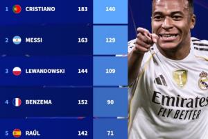 全文摘要:欧冠1/4决赛,皇马遭拜仁淘汰。姆巴佩打入赛季第15球,以70球位列历史射手榜第6,距劳尔仅差一球。凯恩进球后以52球位列第10。C罗、梅西、莱万分列前三。