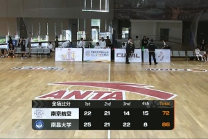 末节之争杨文静率先拿分,随后王佳颖外线开火命中三分,进攻端南京航空稍占上风但也没能追回太多分差,南昌大学这边李嘉琪延续手感继续命中三分,球队一直维持10分上下的领先掌控比赛。最终,南昌大学84-72击败南京航空航天大学拿下比赛。