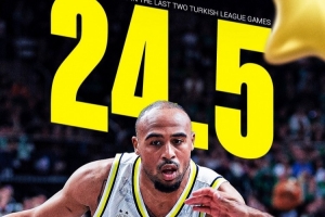 本场比赛,霍顿-塔克15投11中,拿到了25分6篮板1助攻的数据。前两轮土超联赛场均24.5分5篮板4助攻,其中他的得分排在联赛第三。