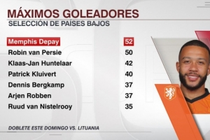 全文摘要:在9月8日世预赛中,荷兰3-2战胜立陶宛。德佩梅开二度,以52球超越范佩西(50球),成为荷兰队史射手王。他也是队史射手榜前七中唯一的现役球员。