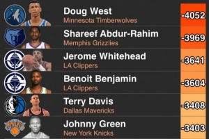 体育资讯10月10日讯 美媒HoopsHype统计的NBA历史上累计净胜分最差的球员TOP10。HoopsHype也表示这不就代表球员有多糟糕,首先你的能在联盟呆足够长的时间,同时可能又效力的球队战绩比较糟糕。