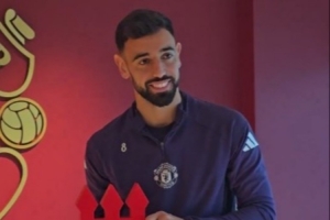 体育资讯10月18日讯 B费此前当选曼联9月最佳球员,他于本周五在卡灵顿训练基地领取了该奖项。