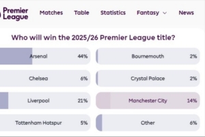 英超官网表示,这可能是英超有史以来最精彩的冠军争夺战之一。他们发起了“谁能最终夺冠?”的球迷投票,枪手最被看好,他们的得票率高达44%。红军曼城紧随其后。