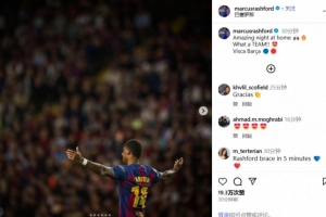 在社交媒体上,拉什福德庆祝了本场比赛的胜利,他写道:精彩的主场之夜,多么棒的一支球队!加油巴萨!