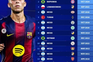 巴萨球员在欧冠曾16次上演帽子戏法:梅西8次做到,费尔明在列