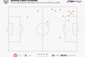 根据统计,多库本场19次尝试过人、13次成功,两项数据均是英超本赛季的纪录。