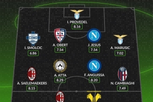 中场:萨勒马科尔斯(AC米兰,8.15分)、亚瑟-阿塔(乌迪内斯,8.29分)、安古伊萨(那不勒斯,8.20分)、尼古拉·坎比亚吉(博洛尼亚,7.49分)