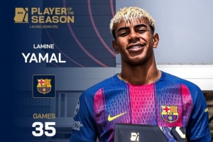 体育资讯9月12日讯 《转会市场》官方宣布,18岁的巴萨边锋亚马尔当选德转评选的24-25赛季西甲MVP。